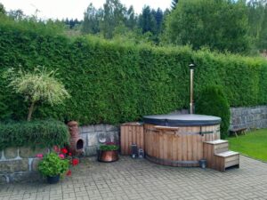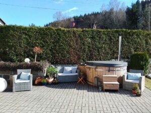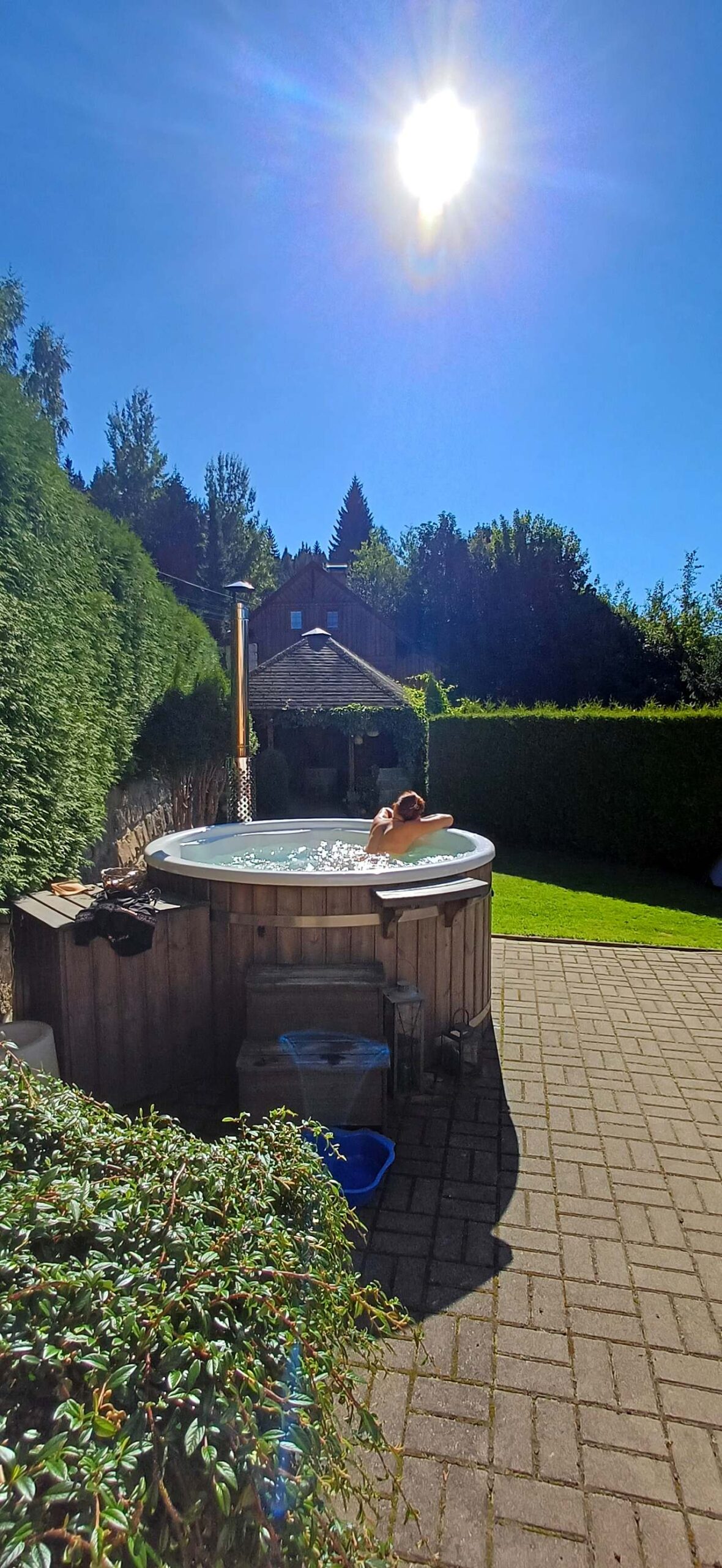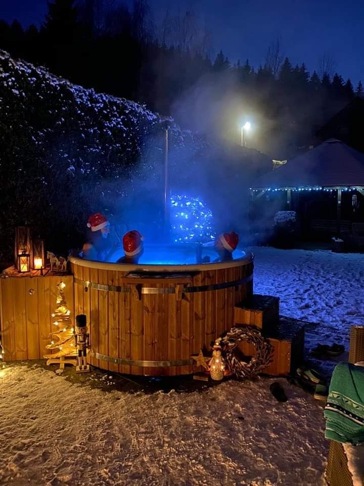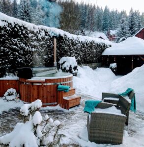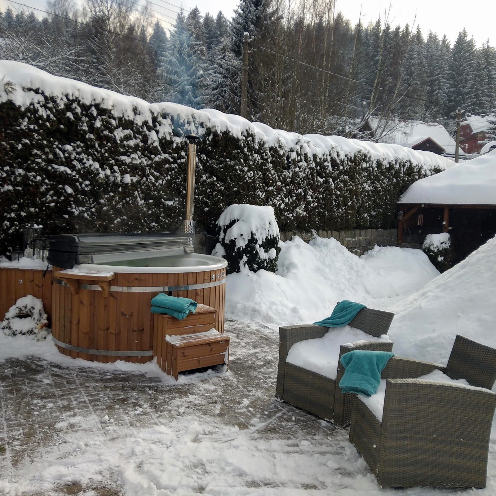 Na terase vás čeká celoročně vyhřívané Jacuzzi, ideální po túře, lyžování nebo jen tak. Není nic krásnějšího, než si užívat bublinkovou lázeň a pozorovat hvězdy