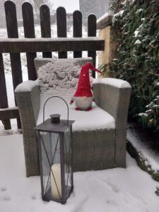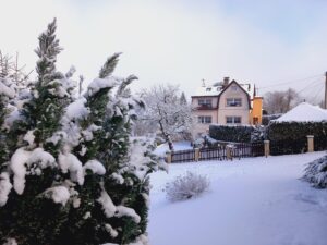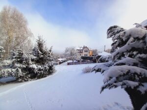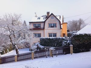 Parkování v oplocené zahradě, dostupné i v zimě.